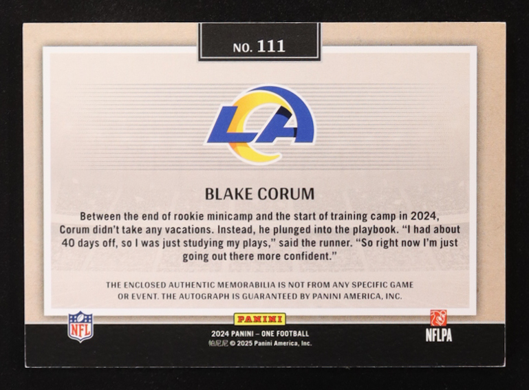 Blake Corum 2024 Panini One Patch Autograph #111 #90/99 RC