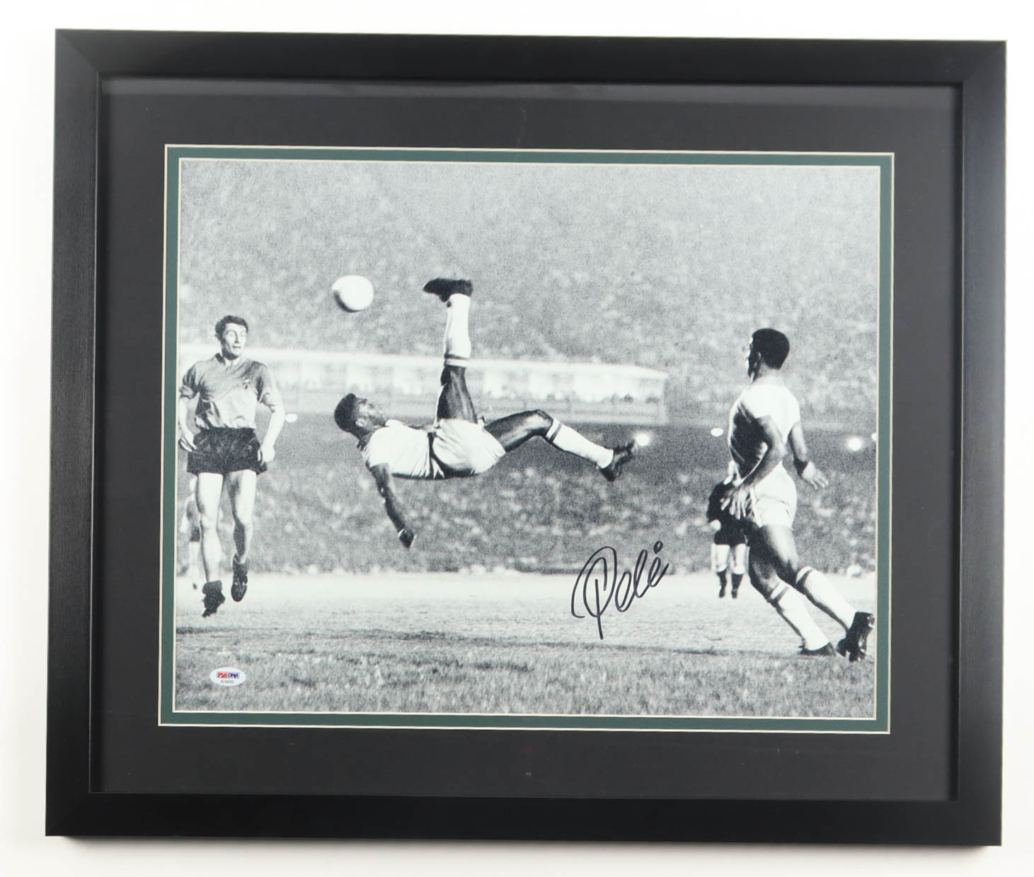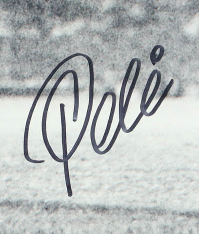 Custom frame measures 22" x 26" in size. Photograph is hand-signed by Pele (Edson Nascimento).
