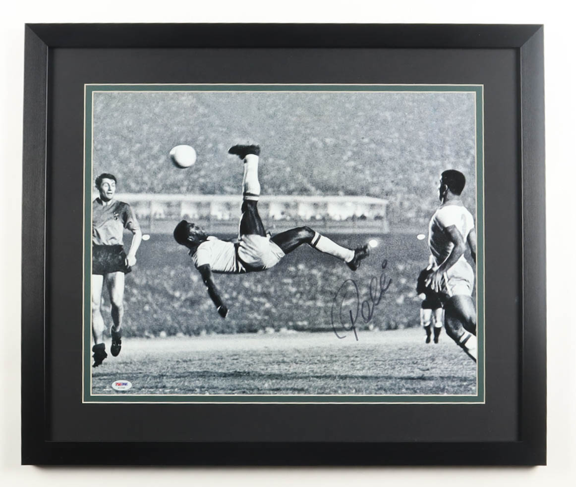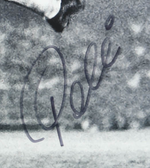 Custom frame measures 22" x 26" in size. Photograph is hand-signed by Pele (Edson Nascimento).