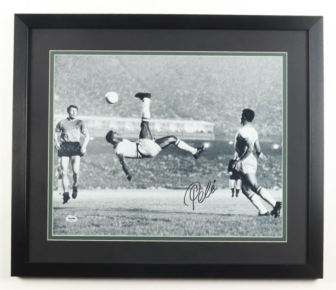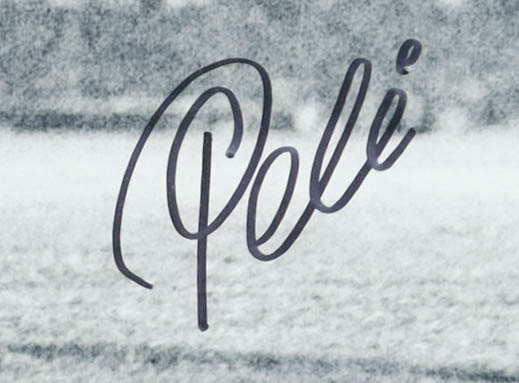 Custom frame measures 22" x 26" in size. Photograph is hand-signed by Pele (Edson Nascimento).