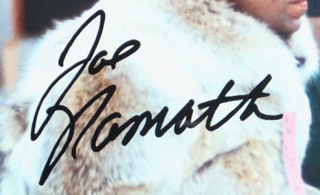 Custom frame measures 22" x 26" in size. Photograph is hand-signed by Joe Namath (New York Jets, HOF).