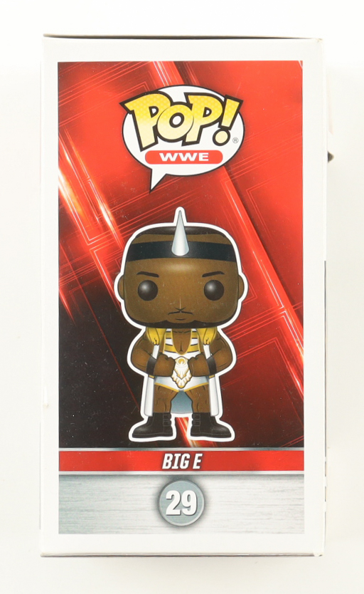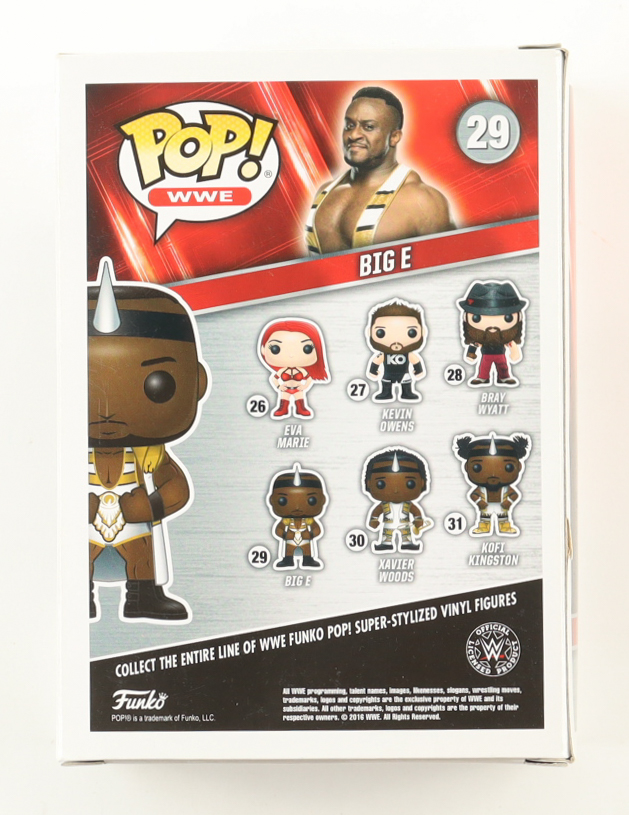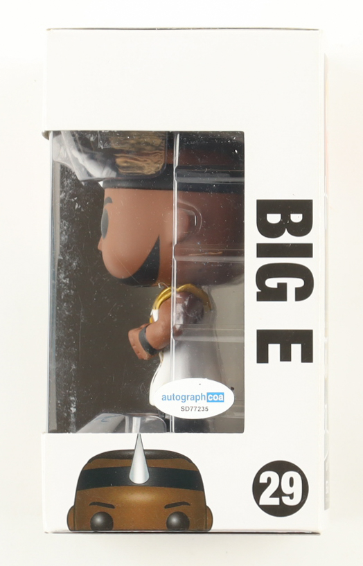 Funko Pop! vinyl figure measures approximately 4" in height and has been hand-signed on the packaging by Big E. Please note, there is damage on the back panel and the window has been swapped.
