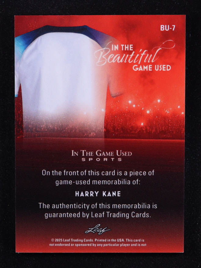 Harry Kane 2025 Leaf ITG Used Sports In The Beautiful Game Relic Silver Sparkle Foil #BU7 #21/35
