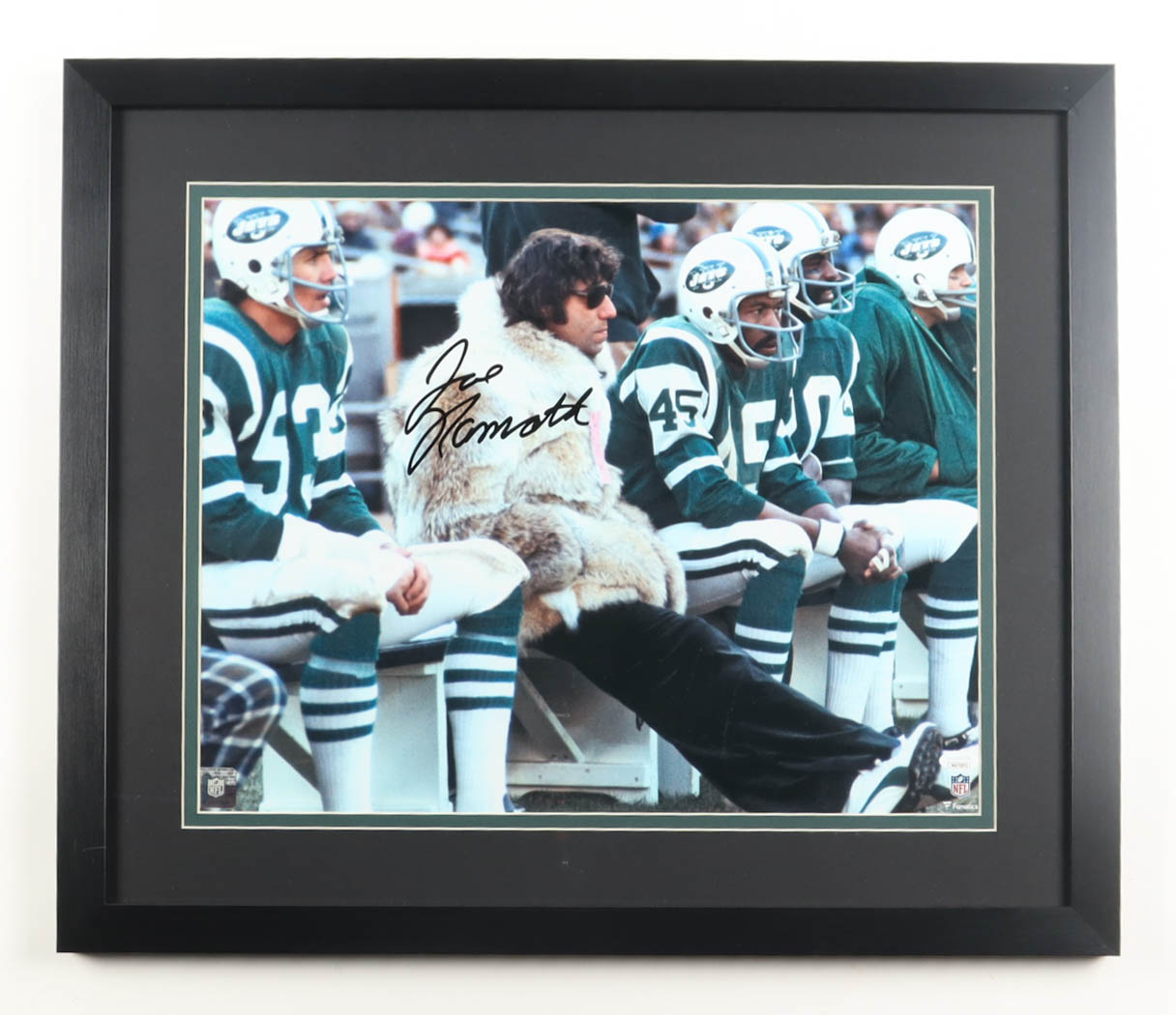 Custom frame measures 22" x 26" in size. Photograph is hand-signed by Joe Namath (New York Jets, HOF).