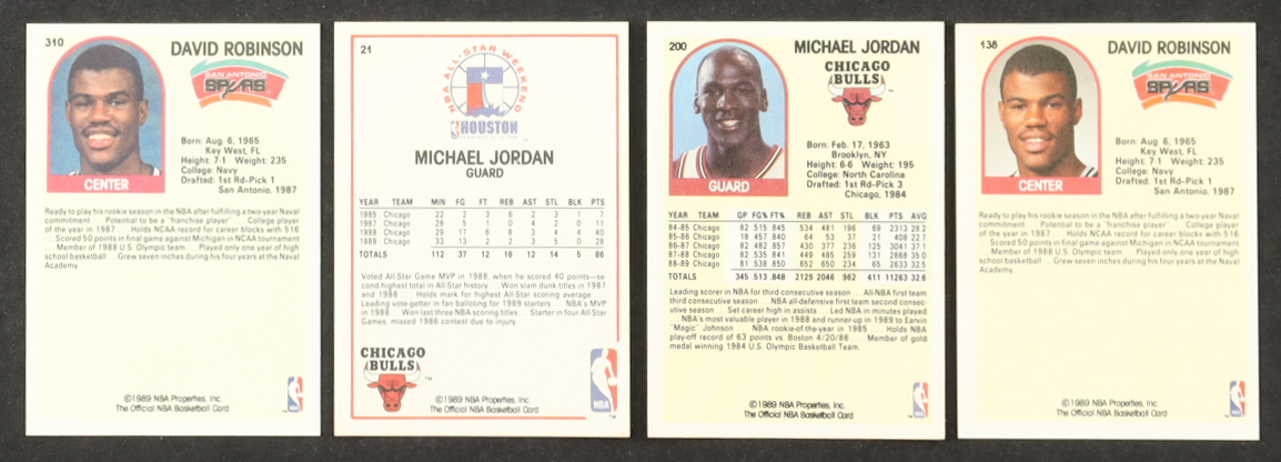 1989-90 Hoops Basketball Complete Set of (353) Cards with Michael Jordan #21 AS, Michael Jordan #200, David Robinson #138 SP RC, Phil Jackson #266 CO