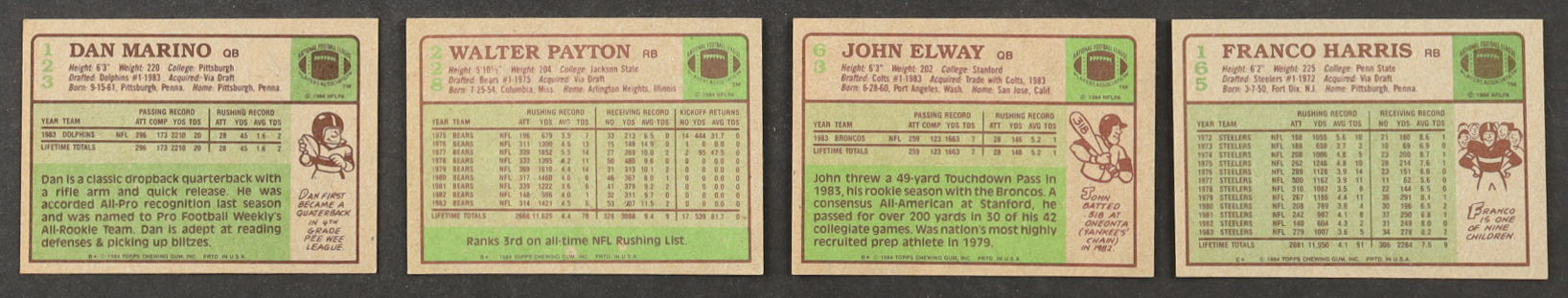 1984 Topps Football Complete Set of (396) Cards with John Elway #63, Howie Long #111 RC, Walter Payton #228, Dan Marino #123 RC