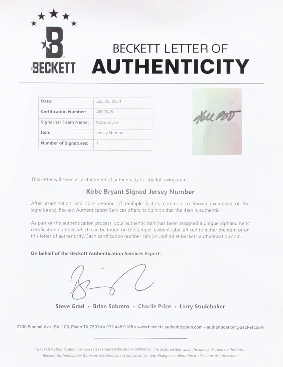 The jersey includes an official PSA/DNA hologram as well as an official Beckett Authentication Services hologram and matching LOA for authenticity purposes.