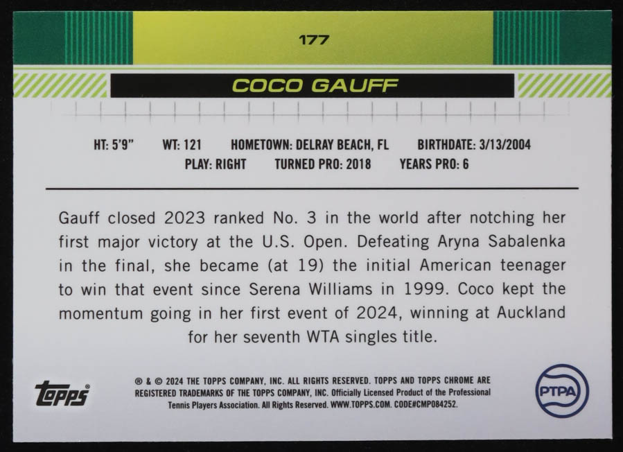 Coco Gauff 2024 Topps Chrome Purple Refractors #177 #074/499