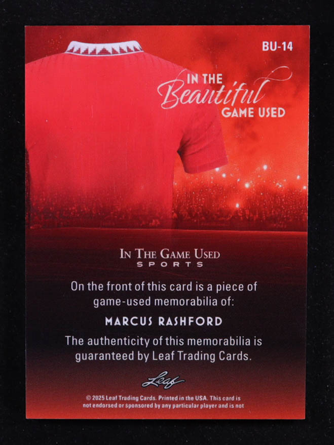 Marcus Rashford 2025 Leaf ITG Used Sports In The Beautiful Game Relic Silver Sparkle Foil #BU14 #32/35