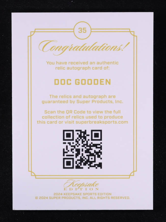 Doc Gooden 2024 Keepsake Sports Edition Gem Patch Autograph #35 #13/75