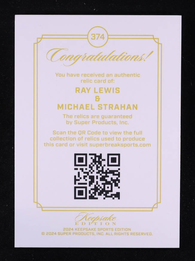 Ray Lewis / Michael Strahan 2024 Sports Keepsake Edition Dual Gem Relics #374 #13/99