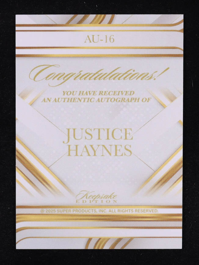 Justice Haynes 2025 Keepsake Edition Authentic Autograph #AU-16 RC