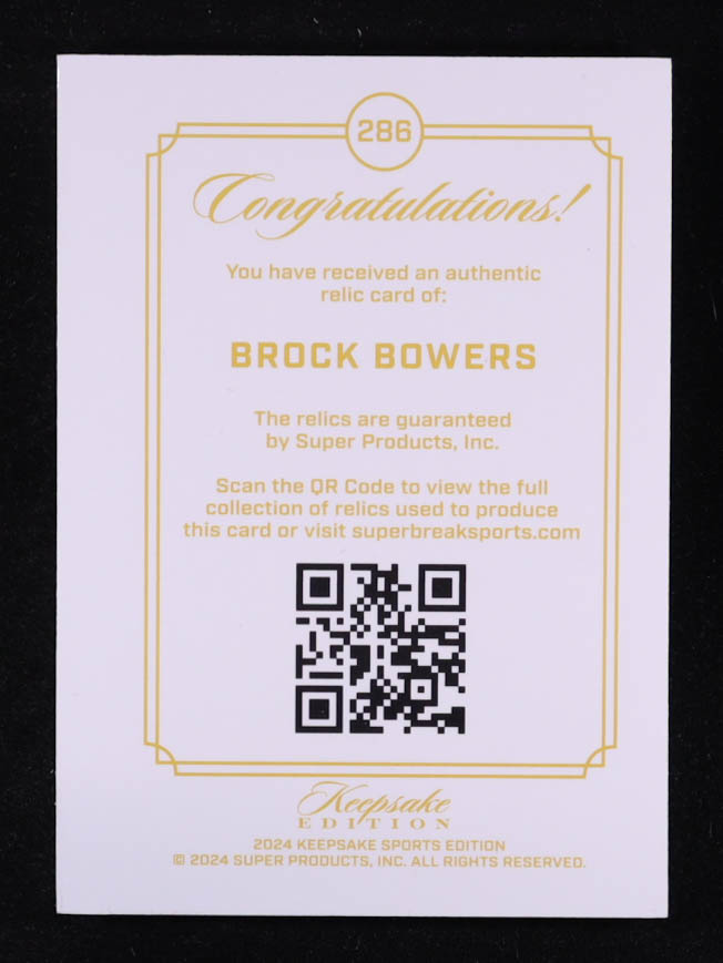 Brock Bowers 2024 Keepsake Sports Edition Gem Relic #286 RC #73/99