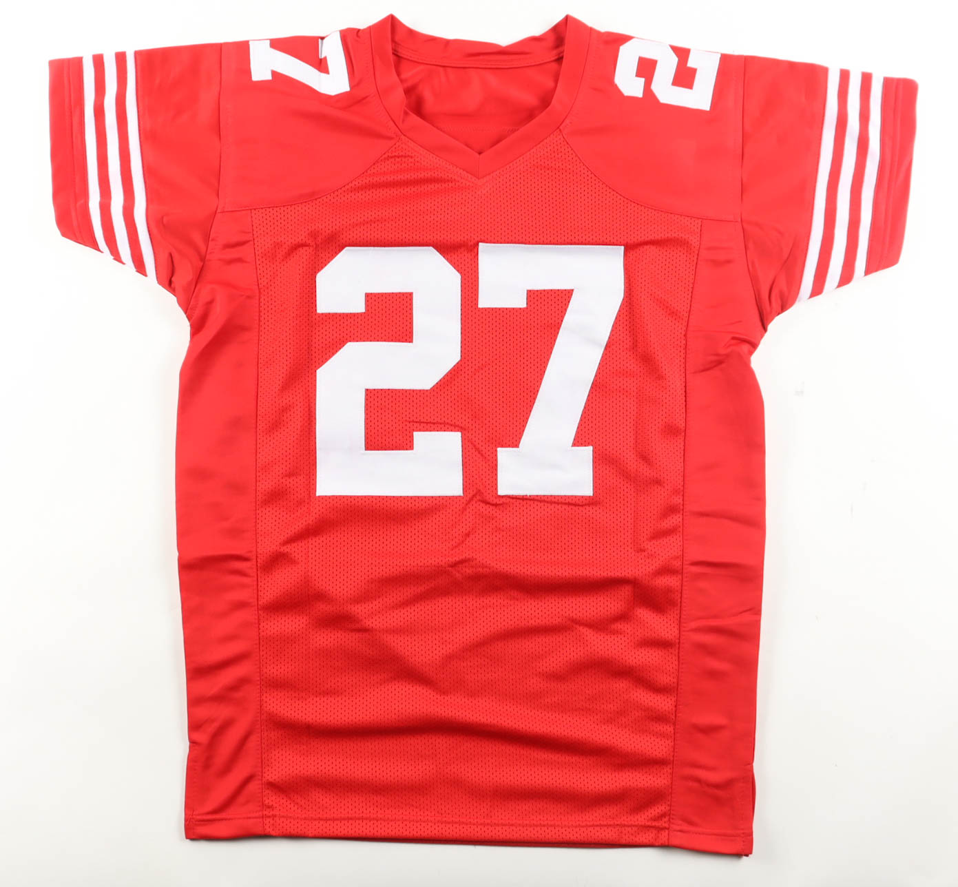 Custom jersey with everything sewn on, size XL. Hand-signed by Ji'Ayir Brown.