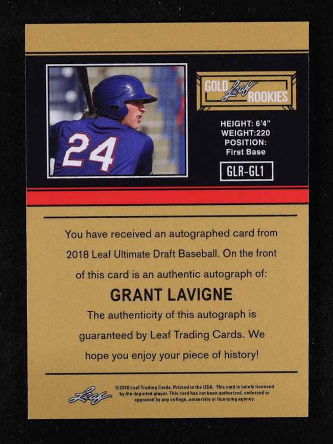 Grant Lavigne 2018 Leaft Draft Ultimate Gold Leaf Rookies Auto #GLR-GL1 RC