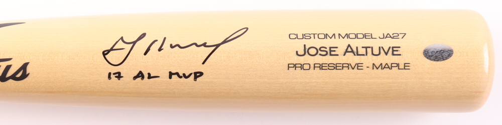 Victus Player Custom Design Model Pro Reserve Maple baseball bat. Hand-signed and inscribed by Jose Altuve (Houston Astros).