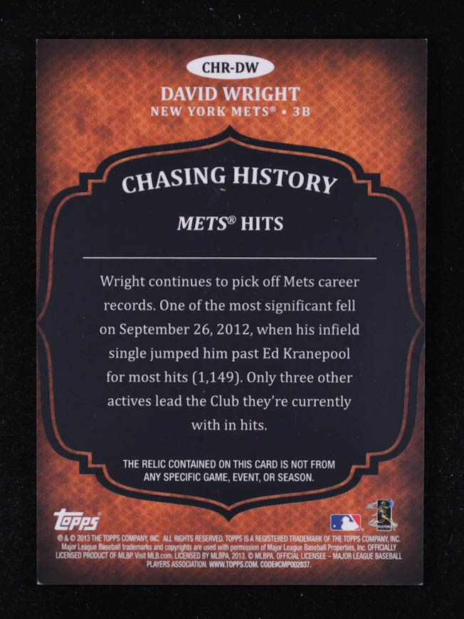 David Wright 2013 Topps Chasing History Relic Mets Hits Game-Used Memorabilia #CHR-DW