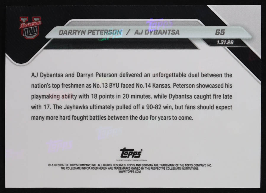 Darryn Peterson / AJ Dybantsa 2025-26 Bowman University Now #65