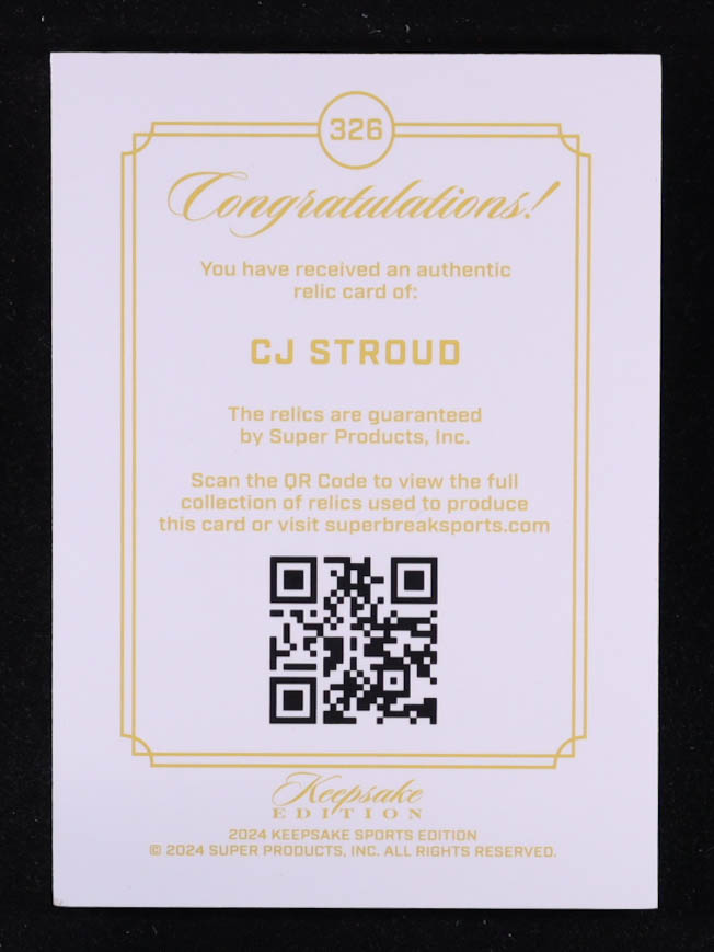 CJ Stroud 2024 Keepsake Sports Edition Gem Relic #326 #26/99