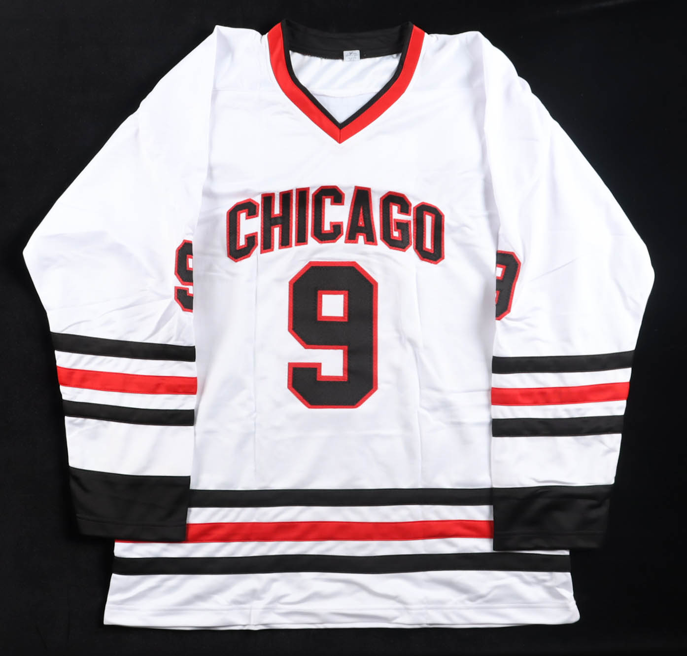 Custom jersey with everything sewn on, size XL. Hand-signed and inscribed by Bobby Hull (D. 2023, HOF).