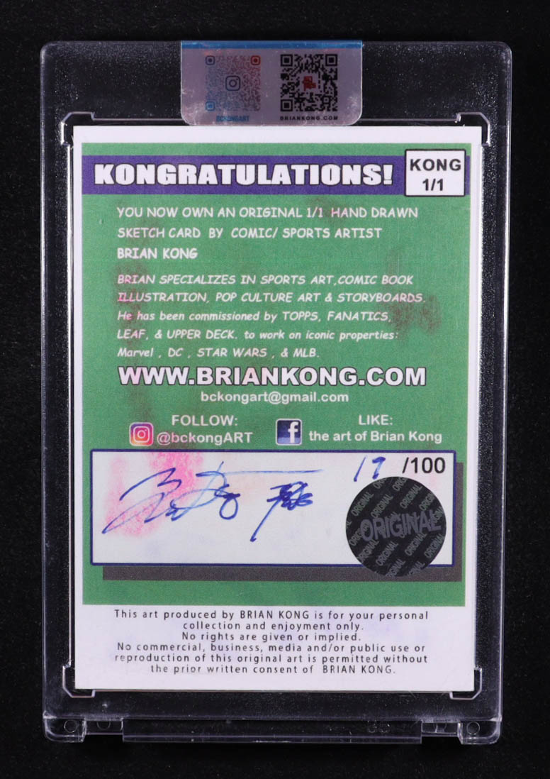 This original sketch card includes original art by renowned comic book artist, Brian Kong. Also includes a character name inscription on the back by the artist.