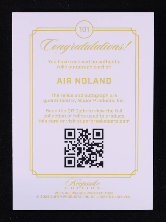 Air Noland 2024 Keepsake Sports Edition Gem Patch Autograph #101 RC #19/75