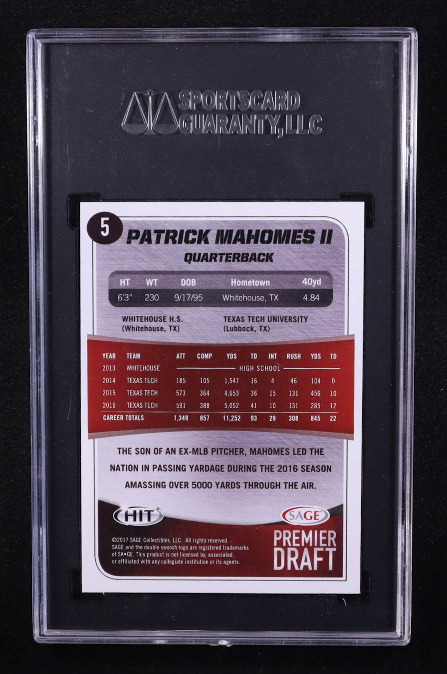 Patrick Mahomes II 2017 SAGE HIT Premier Draft #5 RC (SGC 10)