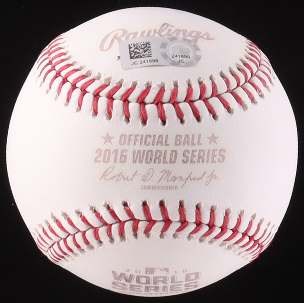 Rawlings Official 2016 World Series Baseball. Hand-signed and inscribed by Ben Zobrist (Chicago Cubs).