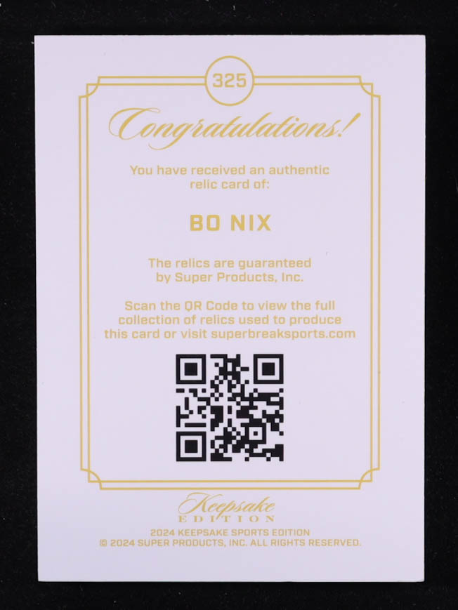Bo Nix 2024 Keepsake Sports Edition Gem Relic #325 RC #10/99