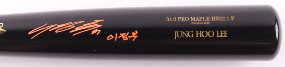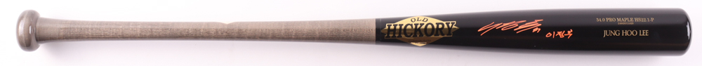 Old Hickory Player Model baseball bat has been hand-signed in English and Hangul by Jung-hoo Lee (San Francisco Giants).