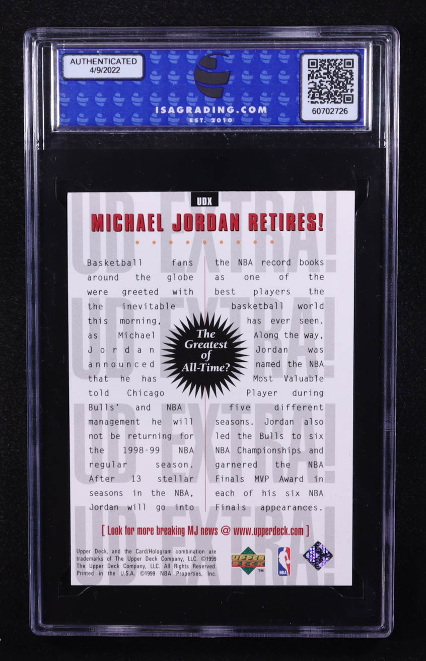 Michael Jordan 1998-99 Upper Deck #UDX Michael Jordan Retires (ISA 10)