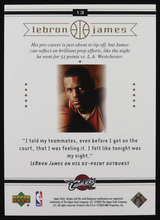 LeBron James 2003 Upper Deck LeBron James Box Set In the Zone #13 RC