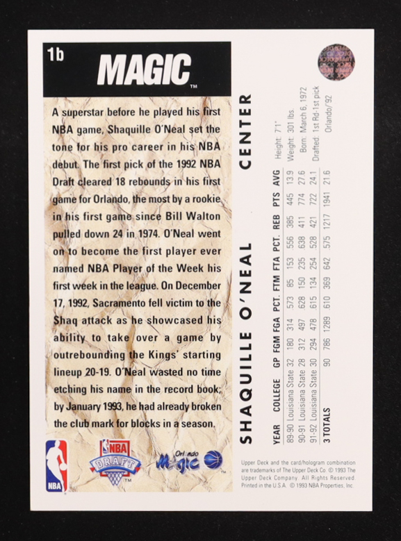 Shaquille O'Neal 1992-93 Upper Deck TRADE #1B RC