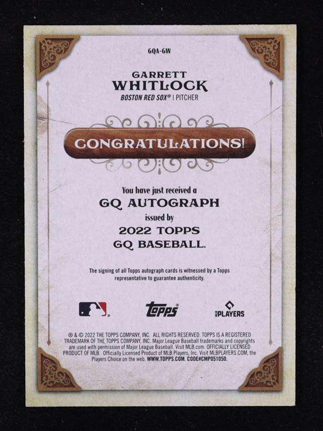 Garrett Whitlock 2022 Topps Certified Gypsy Queen Baseball Autographs #GQA-GW
