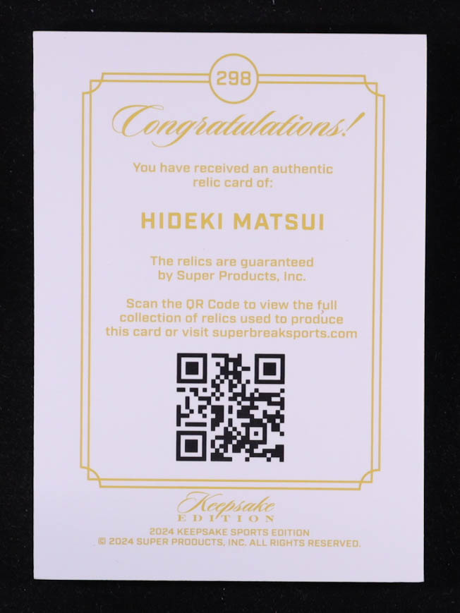 Hideki Matsui 2024 Keepsake Sports Edition Gem Relic #298 #11/99