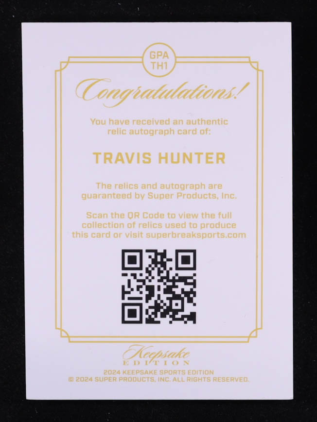 Travis Hunter 2024 Keepsake Sports Edition Gem Patch Pink Autograph #GPA-TH1 RC #30/99