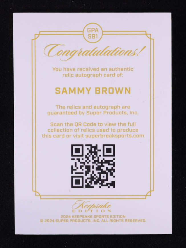 Sammy Brown 2024 Keepsake Sports Edition Gem Patch Pink Autograph #GPA-SB1 RC #51/99