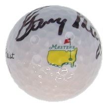 Titleist Masters logo golf ball has been hand-signed by Gary Player (HOF).