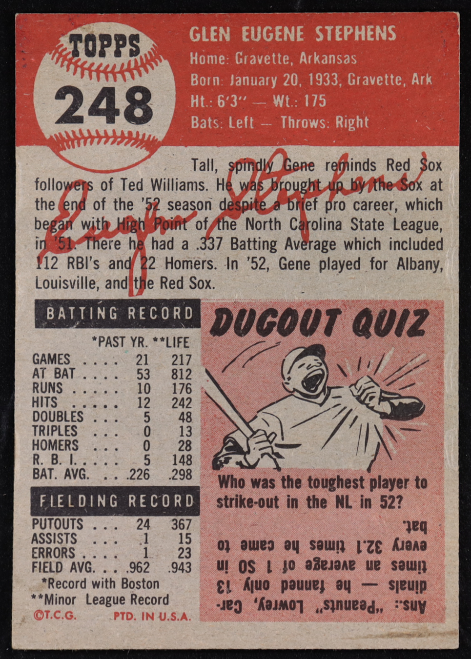 Gene Stephens 1953 Topps #248 RC