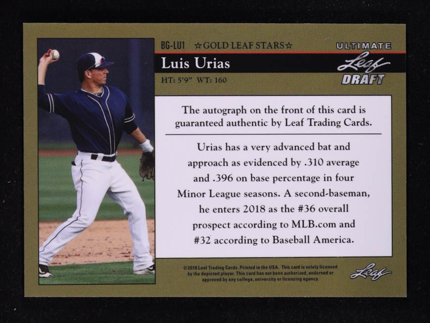 Luis Urias 2018 Leaf Ultimate Draft Black Gold Leaf Stars Autographs #BG-LU1 RC