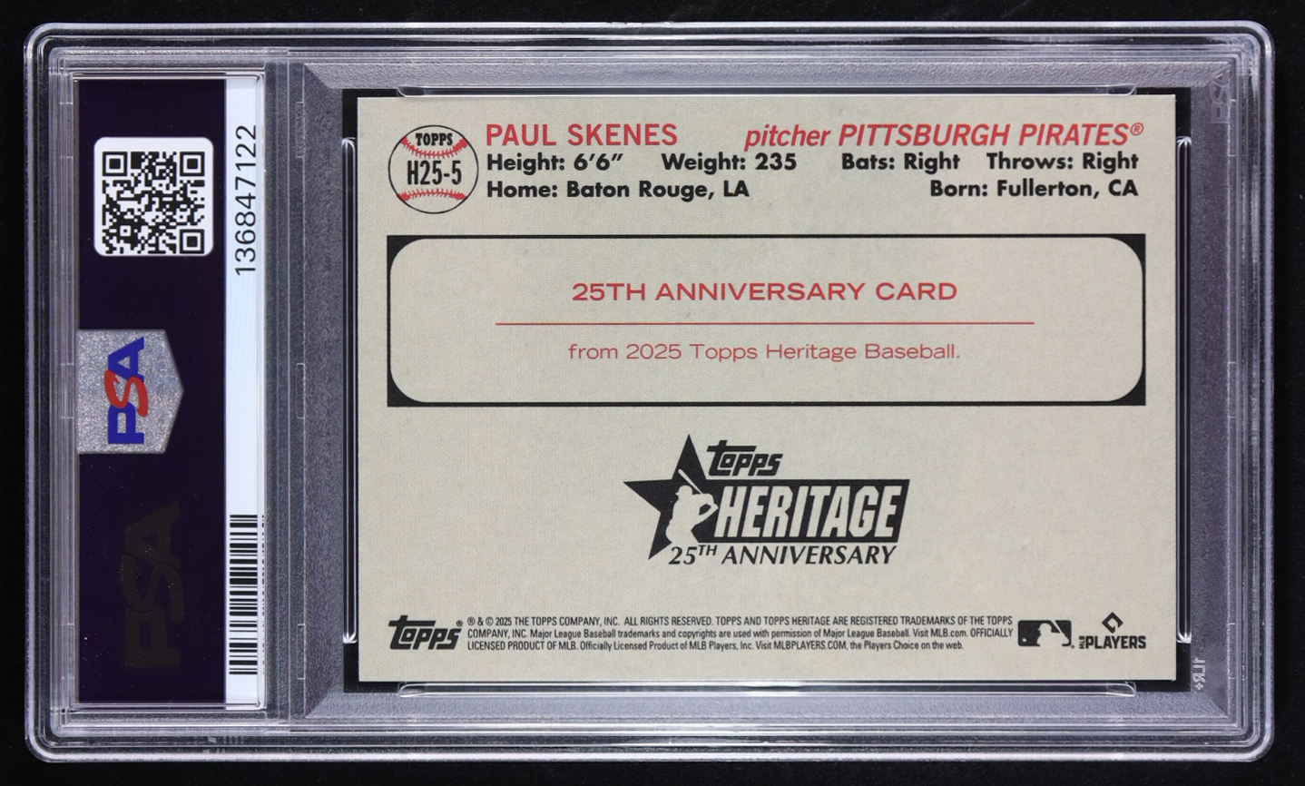 Paul Skenes 2025 Topps Heritage 25th Anniversary Holographic #H255 (PSA 10)
