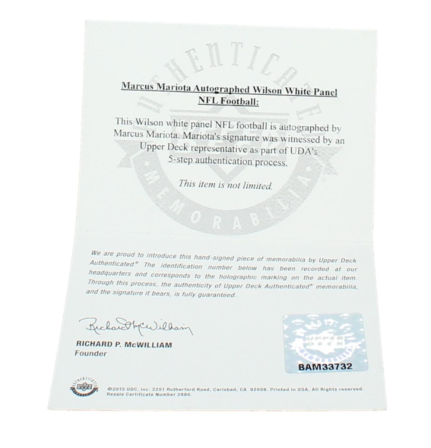 Wilson NFL "The Duke" official football has been hand-signed by Marcus Mariota (Tennessee Titans).