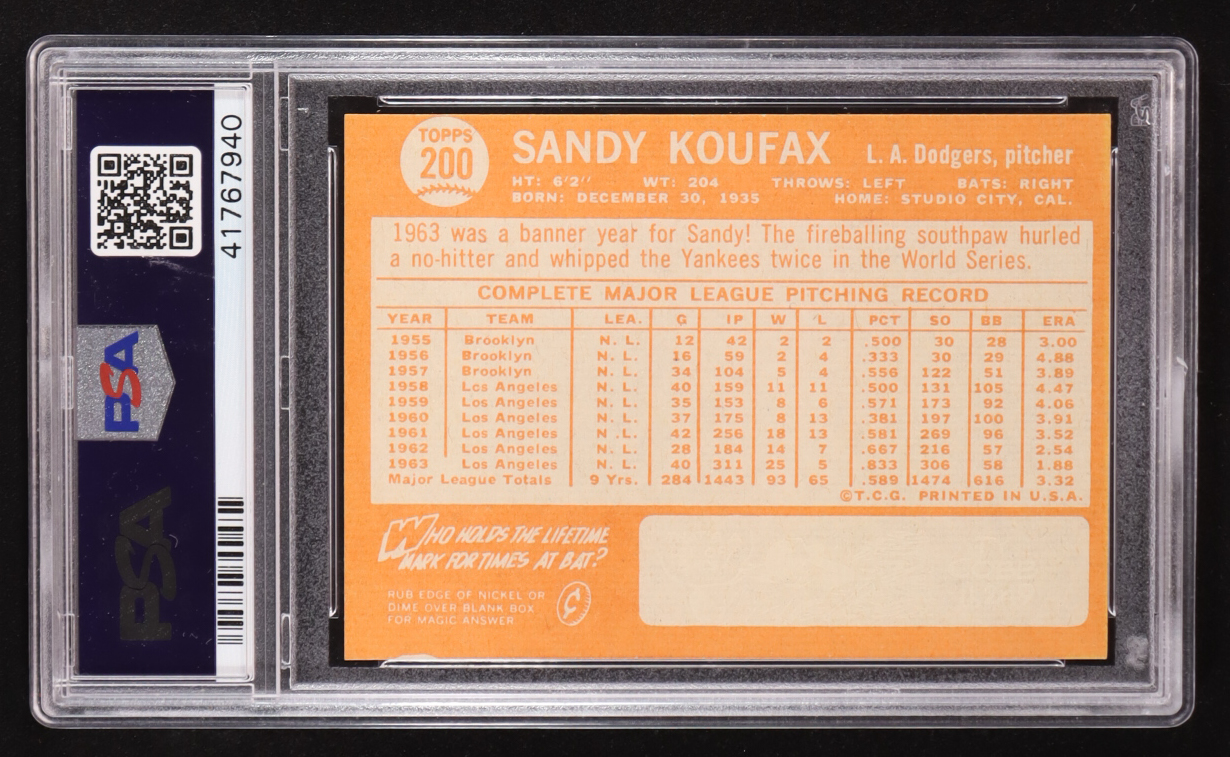 Sandy Koufax 1964 Topps #200 (PSA 8) (MC)