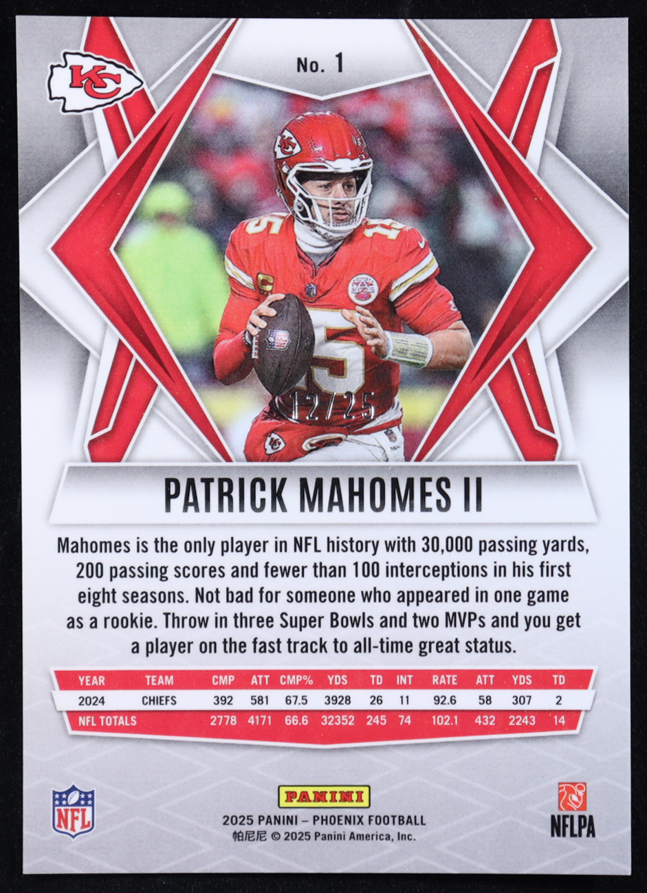 Patrick Mahomes II 2025 Panini Phoenix Green Seismic #1 #12/25