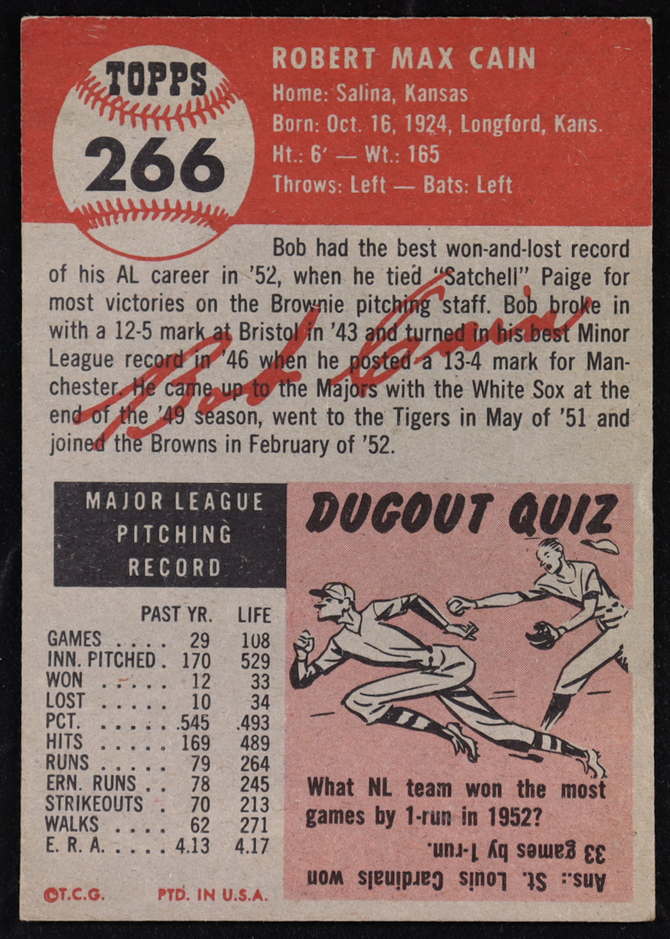 Bob Cain 1953 Topps #266