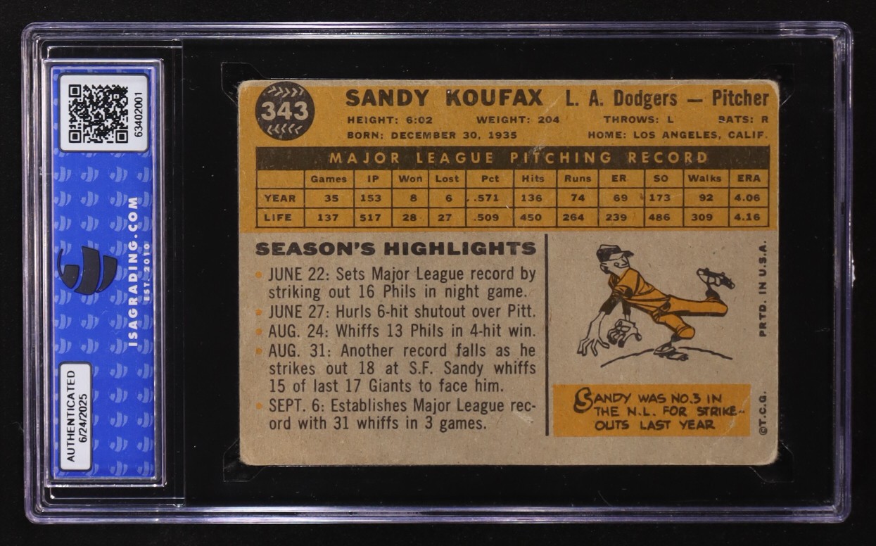 Sandy Koufax 1960 Topps #343 (ISA 2.5)