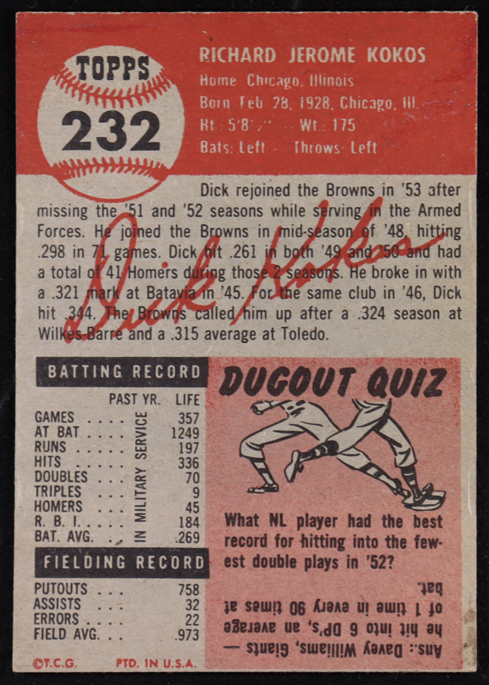 Dick Kokos 1953 Topps #232