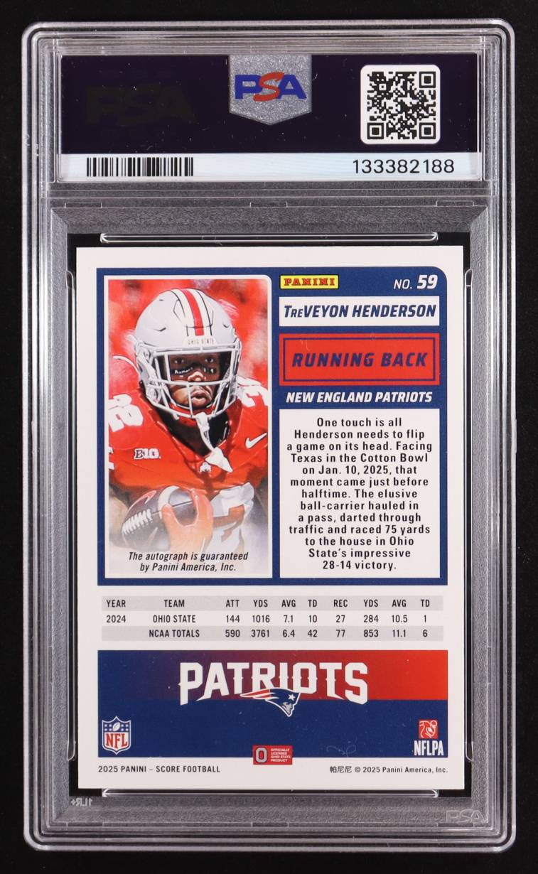 TreVeyon Henderson 2025 Score Signature #59 (PSA 9 | Auto 10)