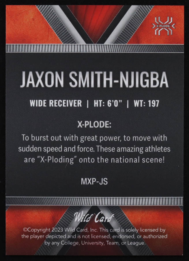 Jaxon Smith-Njigba 2023 Wild Card Matte X-Plode Chase Red Orange #MXPJS #25/100 RC