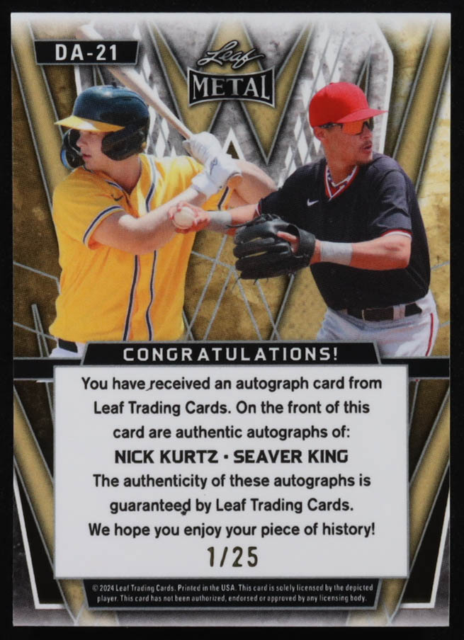 Nick Kurtz / Seaver King 2024 Leaf Metal Baseball Dual Autographs Silver Lava #DA21 #1/25 RC